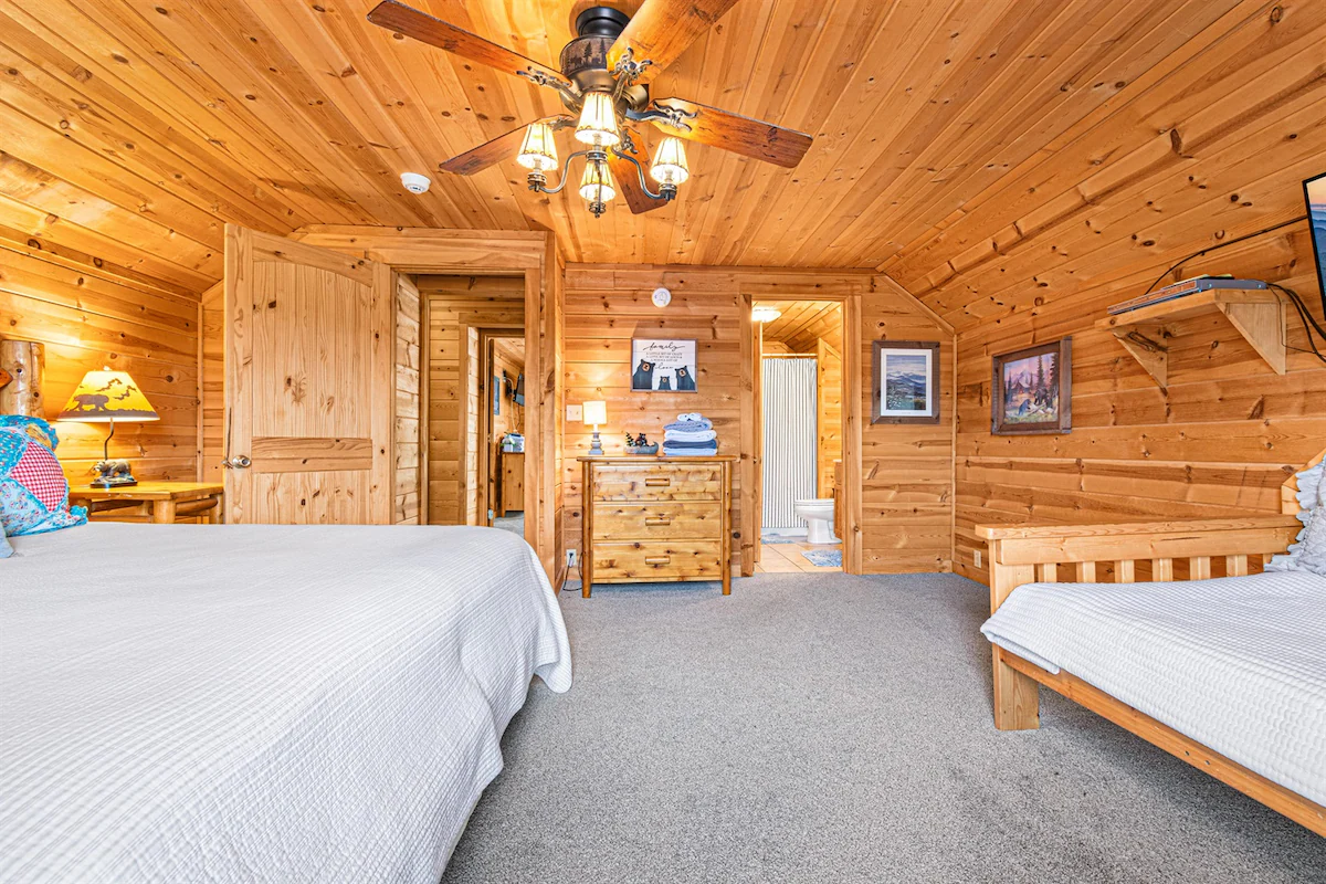 A King’s Lodge is a charming cabin perfect for a memorable getaway with family or friends. With 5 bedrooms, 6 bathrooms, and a cozy bunk room, it comfortably accommodates up to 22 guests.